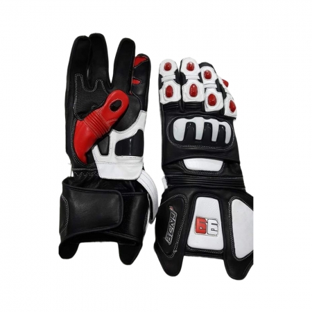 Get in touch to design your own custom colour scheme! 1.2mm cowhide construction 1.2mm cowhide construction 0.8mm kangaroo palm for improved comfort and enhanced feel through the bars Super Fabric outer finger protection & bridge for ultimate abrasion protection Elasticated leather stretch panels at wrist and fingers joints GP TPIJ wrist protection Fully Kevlar lined Carbon fibre film coated palm layer for longevity 3 point Velcro closure system Kevlar upper hand construction for ease of movement Enhanced grip fabric on palm, thumb & finger GP TPU vented knuckle protection Kevlar double stitched