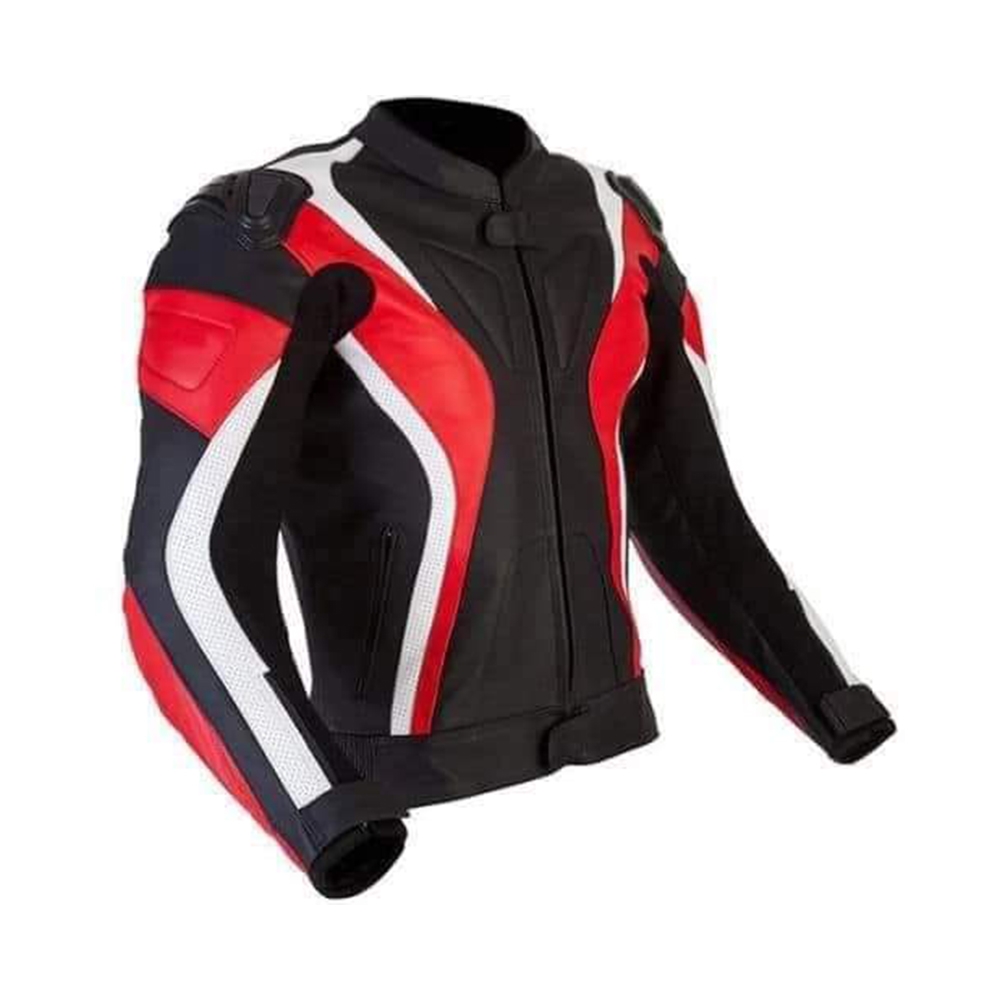 Most off-road motorcycle jackets are made of nylon or other man-made fibers. But while such motorcycle riding jackets are more for weather protection than crash protection, body armor integrated throughout is okay. Most come with reinforced elbows and shoulders. Some also have built-in or removable hard protection.